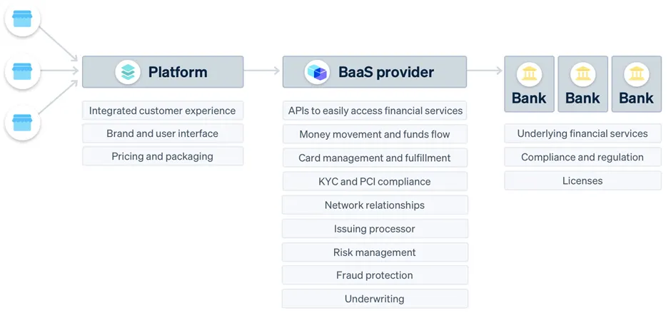BaaS has reshaped how financial products and services are accessed and distributed. BaaS fintechs offer white-labelled plug-and-play licensed financial products that enable fintechs (e.g., neobanks, lending, wallets, PSPs, etc.) and corporates (e.g., fuel, insurance, retailers, etc.) to embed these products into their own customer journeys.