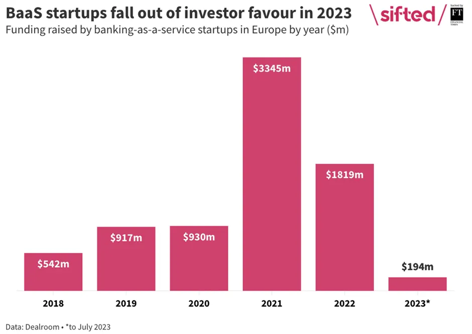In 2023, we have seen a lot of signs that this segment might start consolidating, with companies struggling to raise subsequent rounds, and maintain their business. As of July 2023, only $194M has been invested in BaaS companies, against $3.3B in 2021. Many of them also went through massive layoffs, like Synpase, more recently.